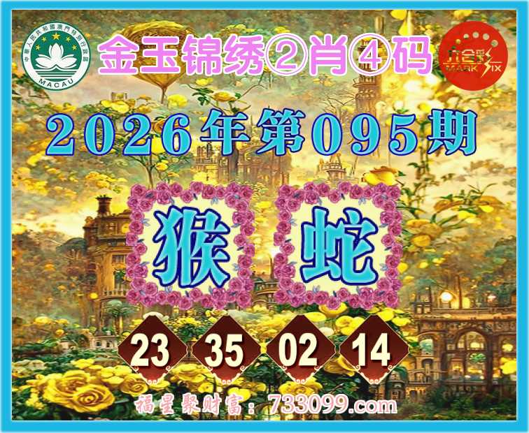 095期:『金玉锦绣』 🍟②肖④码🍟【猴蛇】【23.35.02.14】开:猴35准
