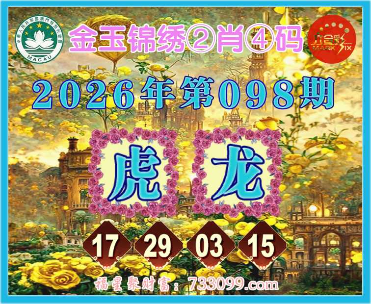 098期:『金玉锦绣』 🍟②肖④码🍟【虎龙】【17.29.03.15】开:虎17准