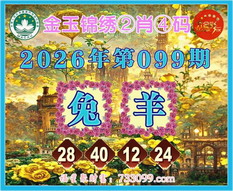099期:『金玉锦绣』 🍟②肖④码🍟【兔羊】【28.40.12.24】开:羊12准