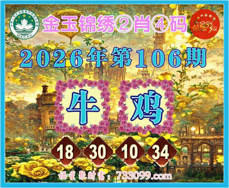 106期:『金玉锦绣』 🍟②肖④码🍟【牛鸡】【18.30.10.34】开:鸡22准