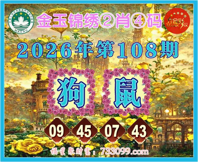 108期:『金玉锦绣』 🍟②肖④码🍟【狗鼠】【09.45.07.43】开:狗45准