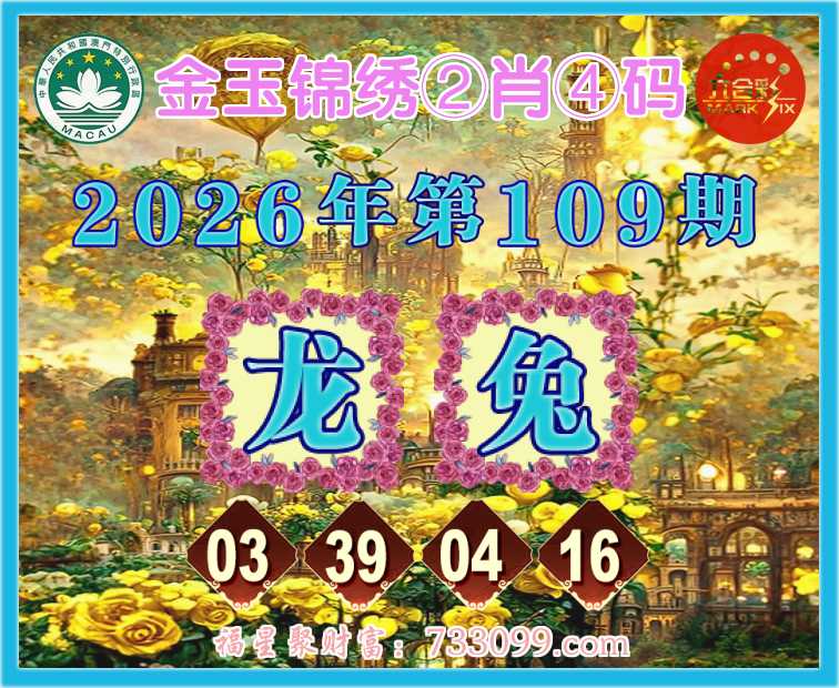 109期:『金玉锦绣』 🍟②肖④码🍟【龙兔】【03.39.04.16】开:兔16准