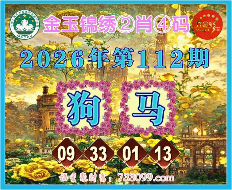 112期:『金玉锦绣』 🍟②肖④码🍟【狗马】【09.33.01.13】开:狗09准