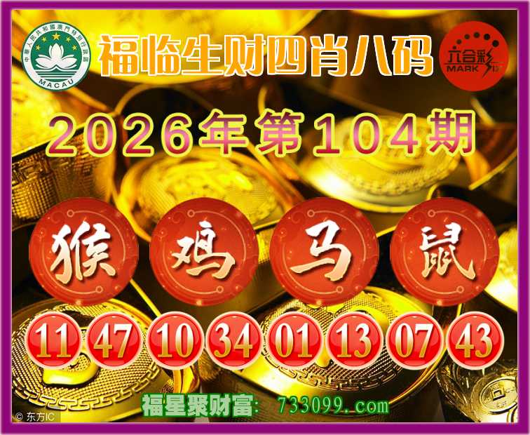 104期:〖福临生财〗 ✨四肖八码✨【猴鸡马鼠】开:马01准