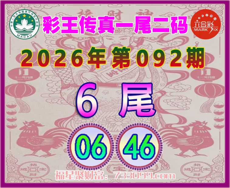 092期:【彩王传真】 ⛩️一尾二码⛩️【6尾主:06.46】开:06准