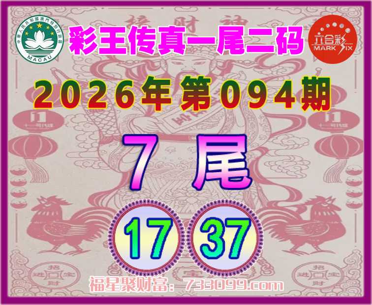 094期:【彩王传真】 ⛩️一尾二码⛩️【7尾主:17.37】开:17准