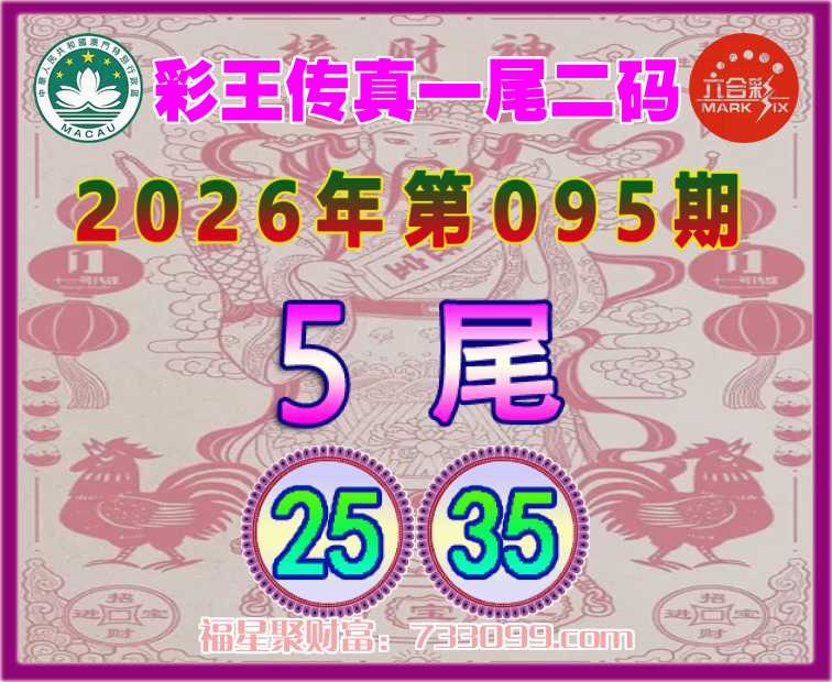 095期:【彩王传真】 ⛩️一尾二码⛩️【5尾主:25.35】开:35准