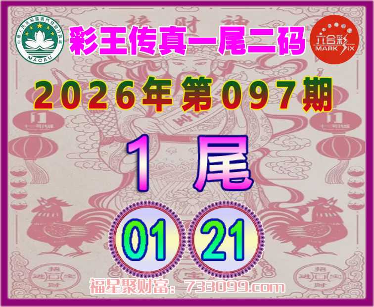 097期:【彩王传真】 ⛩️一尾二码⛩️【1尾主:01.21】开:11准