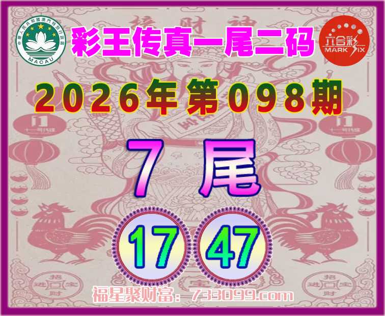098期:【彩王传真】 ⛩️一尾二码⛩️【7尾主:17.47】开:17准