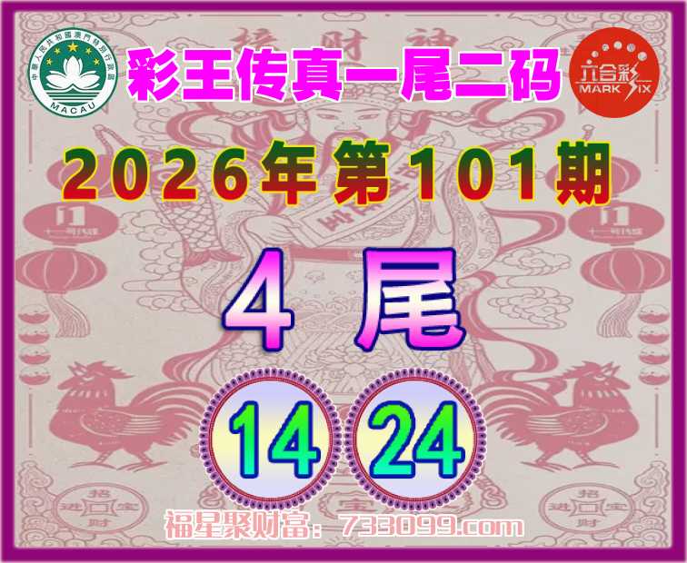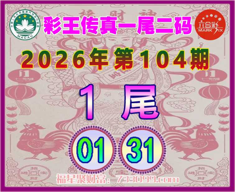 104期:【彩王传真】 ⛩️一尾二码⛩️【1尾主:01.31】开:01准