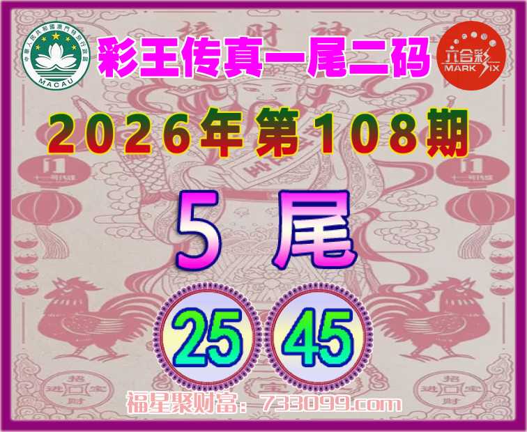 108期:【彩王传真】 ⛩️一尾二码⛩️【5尾主:25.45】开:45准