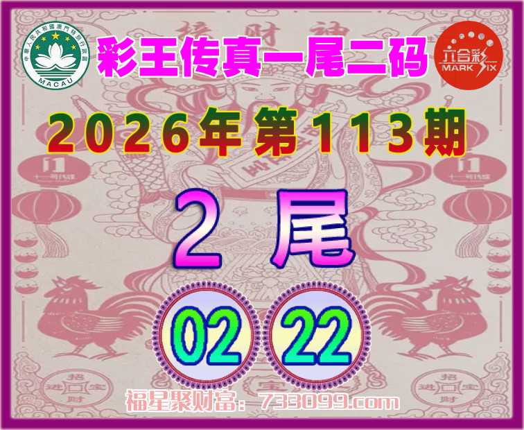 113期:【彩王传真】 ⛩️一尾二码⛩️【2尾主:02.22】开:02准