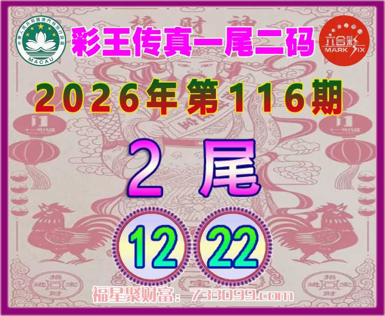 116期:【彩王传真】 ⛩️一尾二码⛩️【2尾主:12.22】开:22准
