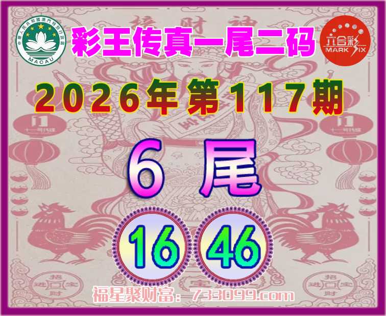 117期:【彩王传真】 ⛩️一尾二码⛩️【6尾主:16.46】开:16准